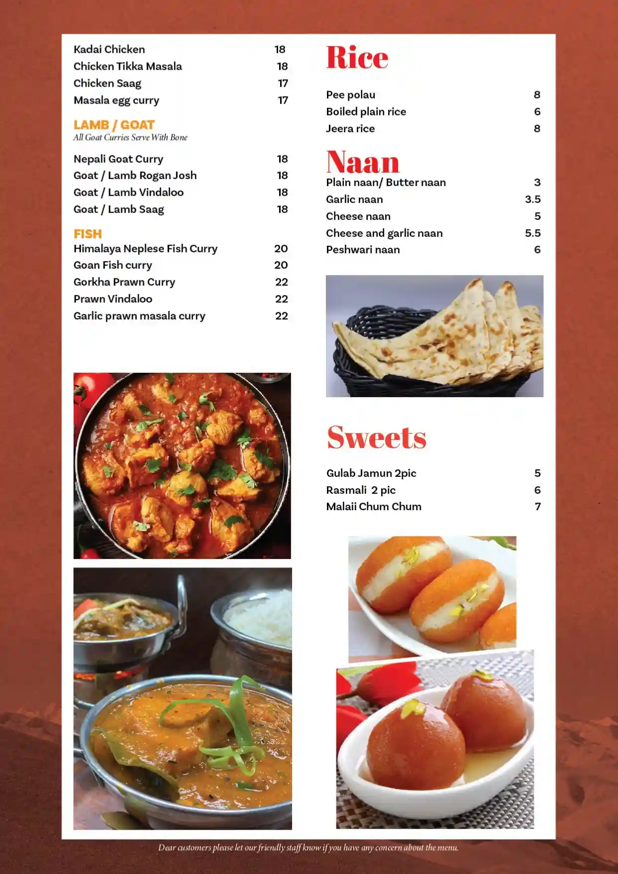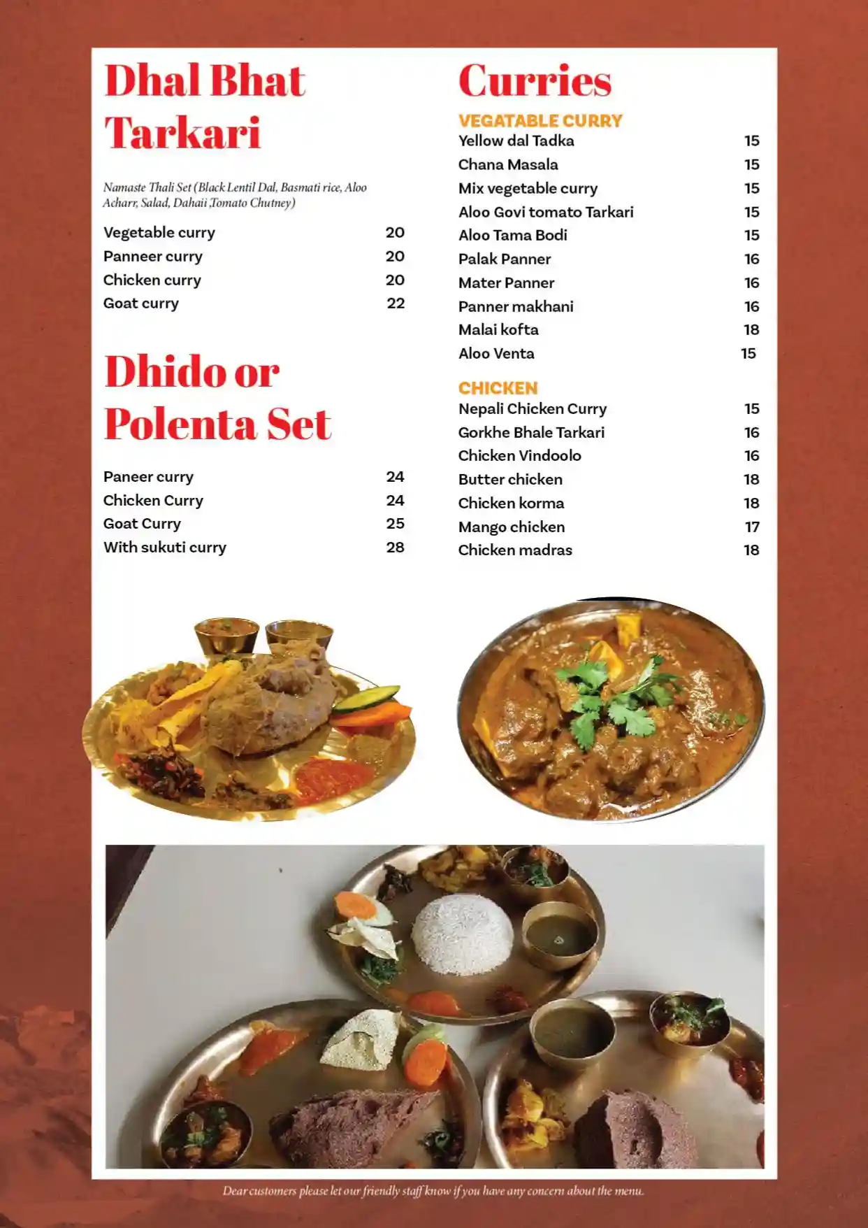 Nepalese food is as diverse as the country itself with its varied ethnic groups. Our highly experienced chef has prepared the menu with meticulous care, so his customers can enjoy Nepal’s different varieties and flavors.