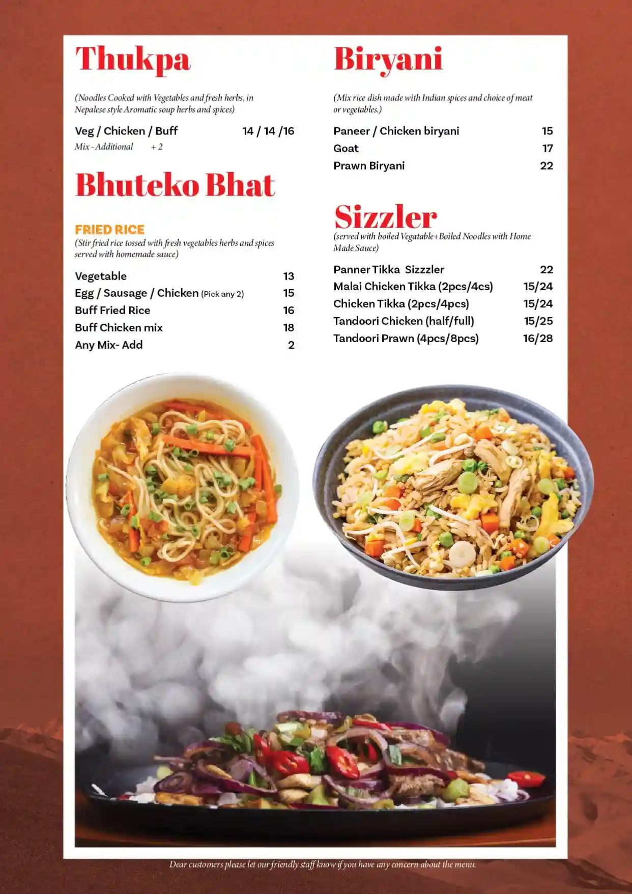 Nepalese food is as diverse as the country itself with its varied ethnic groups. Our highly experienced chef has prepared the menu with meticulous care, so his customers can enjoy Nepal’s different varieties and flavors.
